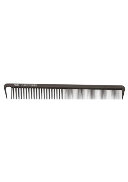 Profesionalni karbonski češalj Carbon Pro 0041 s antistatičkim svojstvima. Idealan za precizno šišanje i oblikovanje kose u salonu.