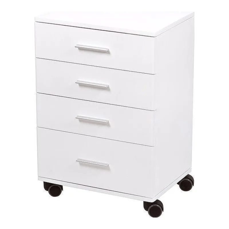 HANDY bijela drvena kolica s 4 ladice i kotačićima. Elegantan i funkcionalan dizajn za organizaciju pribora u kozmetičkim salonima.