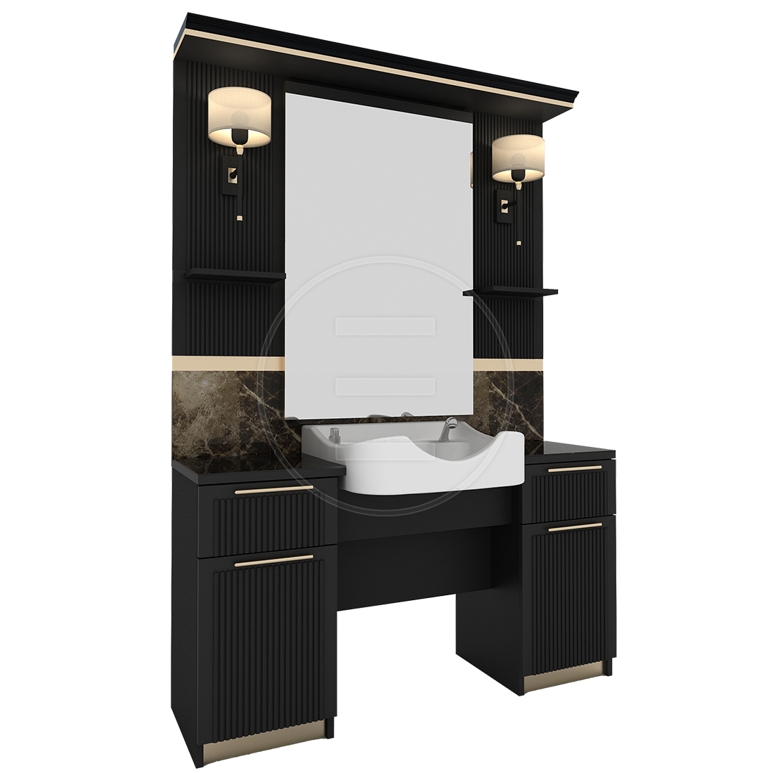 Chaplin ogledalo s radnim mjestom i umivaonikom predstavlja vrhunsku barber radnu jedinicu koja spaja luksuz, funkcionalnost i ergonomiju. Ova moderna frizerska radna jedinica dizajnirana je za salone koji žele ponuditi najvišu razinu usluge i ostaviti snažan vizualni dojam.
