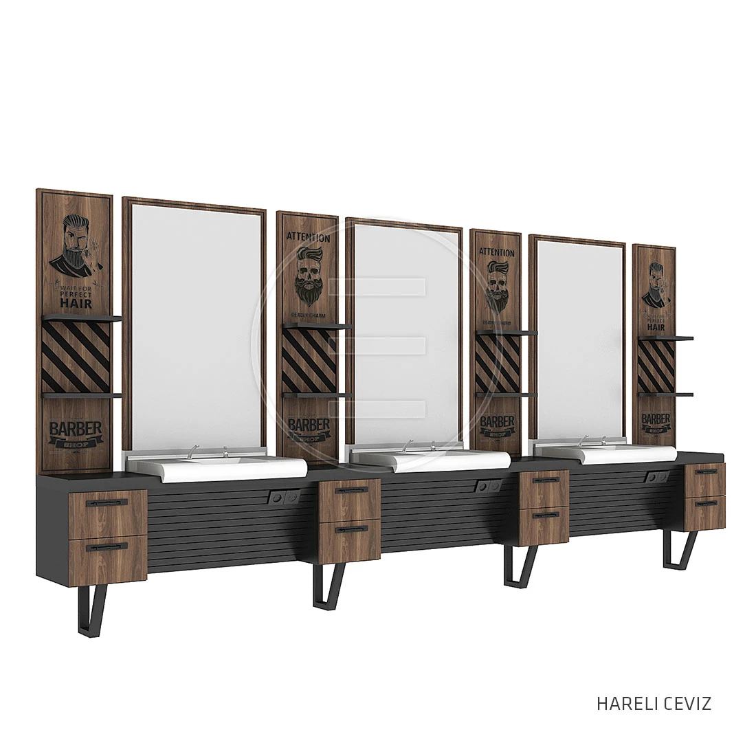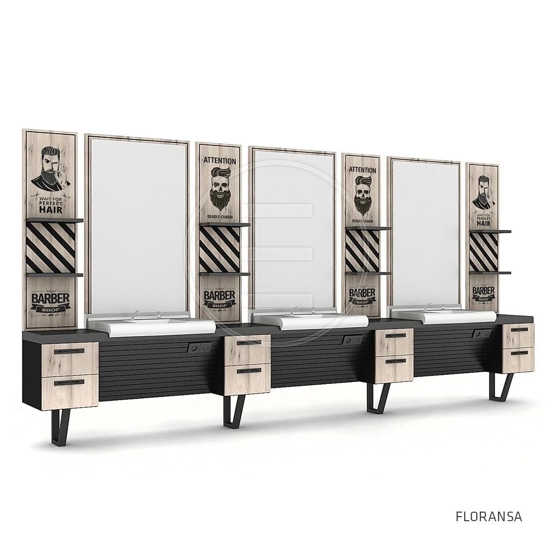 Ogledalo sa radnim mjestom Ceramix Barber – barber stanica s umivaonikom i ladicama