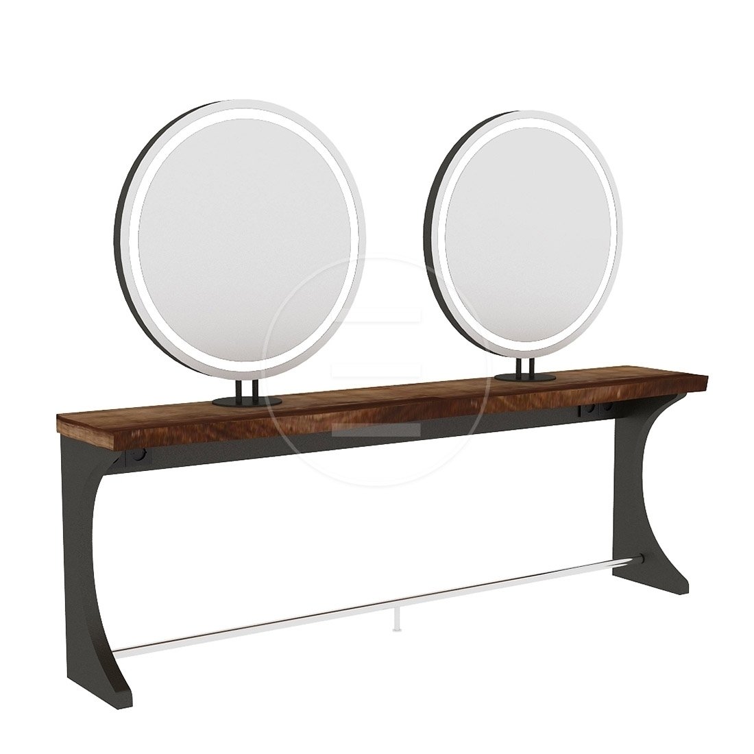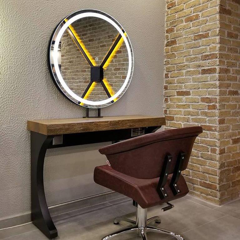 Woody Circle je jedno od najekstravagantnijih ogledala s radnim mjestom. Polica od pravog drveta, integrirani oslonac za noge, LED rasvjeta i držač za fen čine ga luksuznim izborom za moderne frizerske i brijačke salone. Dostupna je i proširena verzija Woody Circle Double.