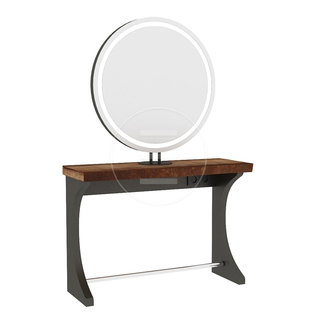 Integrirani oslonac za noge povećava udobnost klijenata tijekom tretmana. Rasvjeta na okviru zrcala osigurava optimalno osvjetljenje za precizno šišanje i stiliziranje.