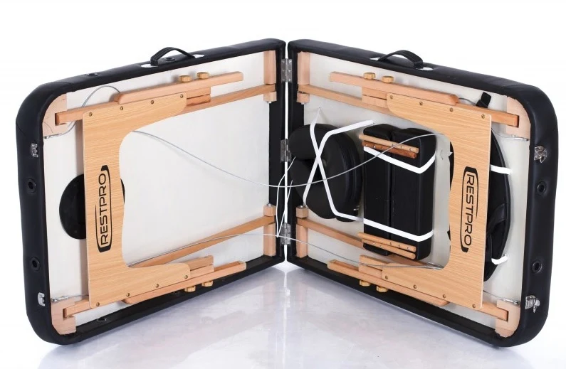 Za razliku od standardnih modela, VIP 2 dolazi s kvalitetnijim komponentama. Kao prijenosni stol za masažu s aluminijskim naslonom za glavu i dodatnim osloncem za ruke, uključuje:
