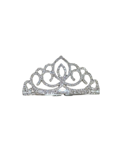 Elegantni rajf u obliku krune (diadema) namijenjen je posebnim prilikama, frizerskim stiliziranjima i svečanim frizurama. Ukrašen sjajnim kamenčićima, ovaj rajf pruža luksuzan i profinjen izgled te se ističe kao dekorativni detalj frizure. Zahvaljujući laganoj konstrukciji i zupcima na unutarnjoj strani, osigurava stabilno i udobno nošenje. Idealan je za vjenčanja, svečane događaje, frizerske prezentacije i posebne stylinge.