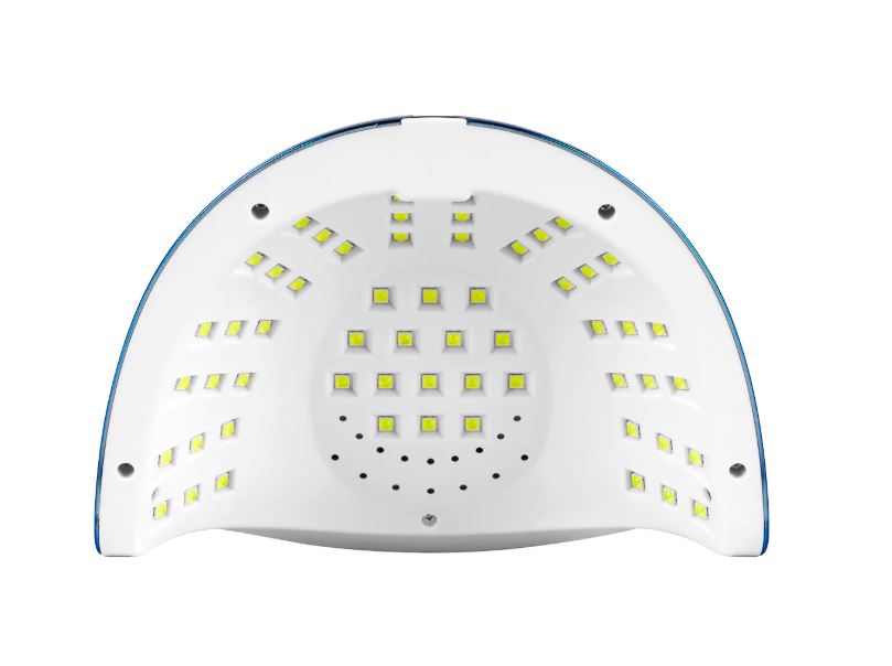 Opremljena s 57 pravilno raspoređenih LED dioda, ova lampa radi bez mrtvih zona, čime osigurava savršeno stvrdnjavanje gelova i hibridnih lakova za nokte. Zatvoreni oblik, takozvana kabina, omogućuje preciznije i brže fiksiranje dizajna noktiju, a oblik također doprinosi ravnomjernoj raspodjeli svjetlosti.